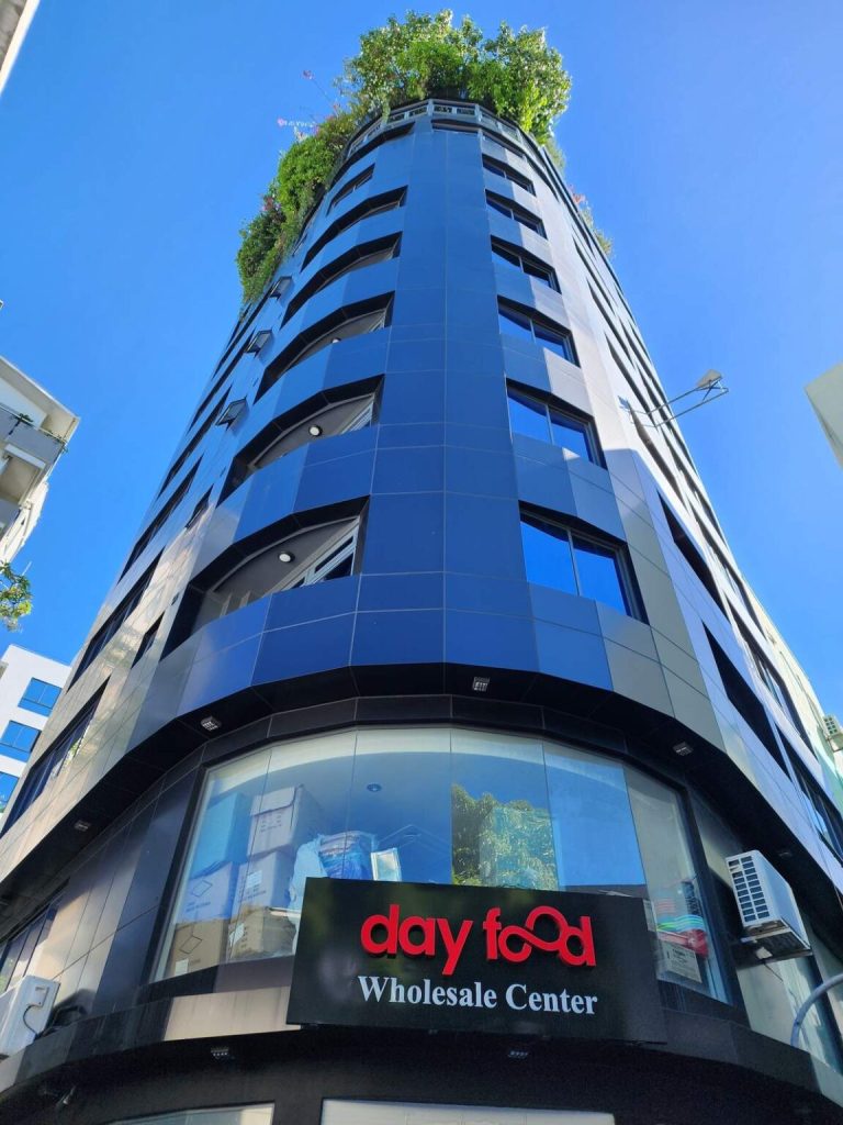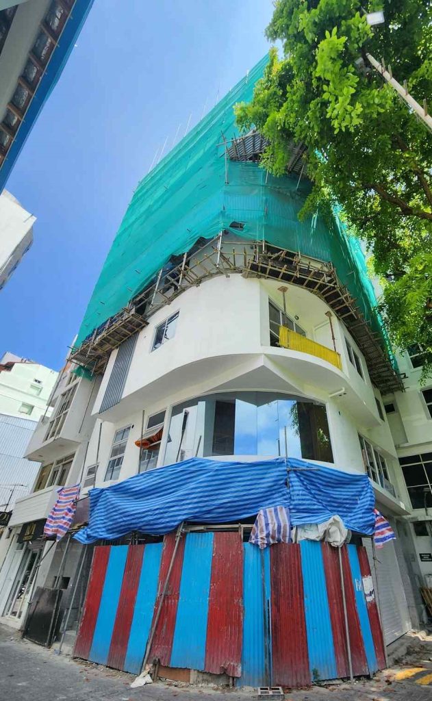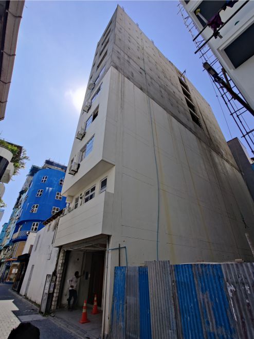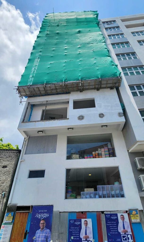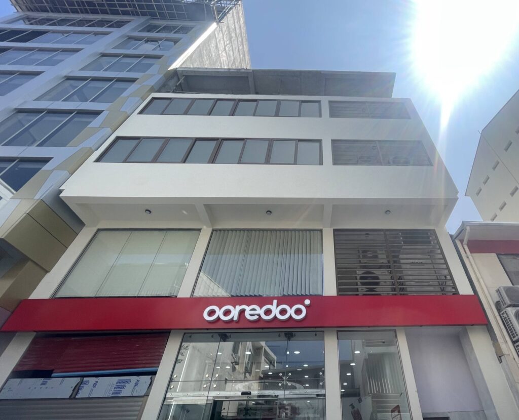 – A completed commercial-residential mixed building featuring a prominent Ooredoo shop at ground level.