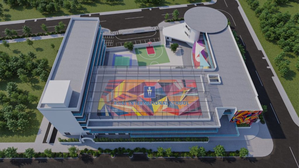 -A community-oriented educational facility surrounded by greenery, offering a welcoming and open environment.